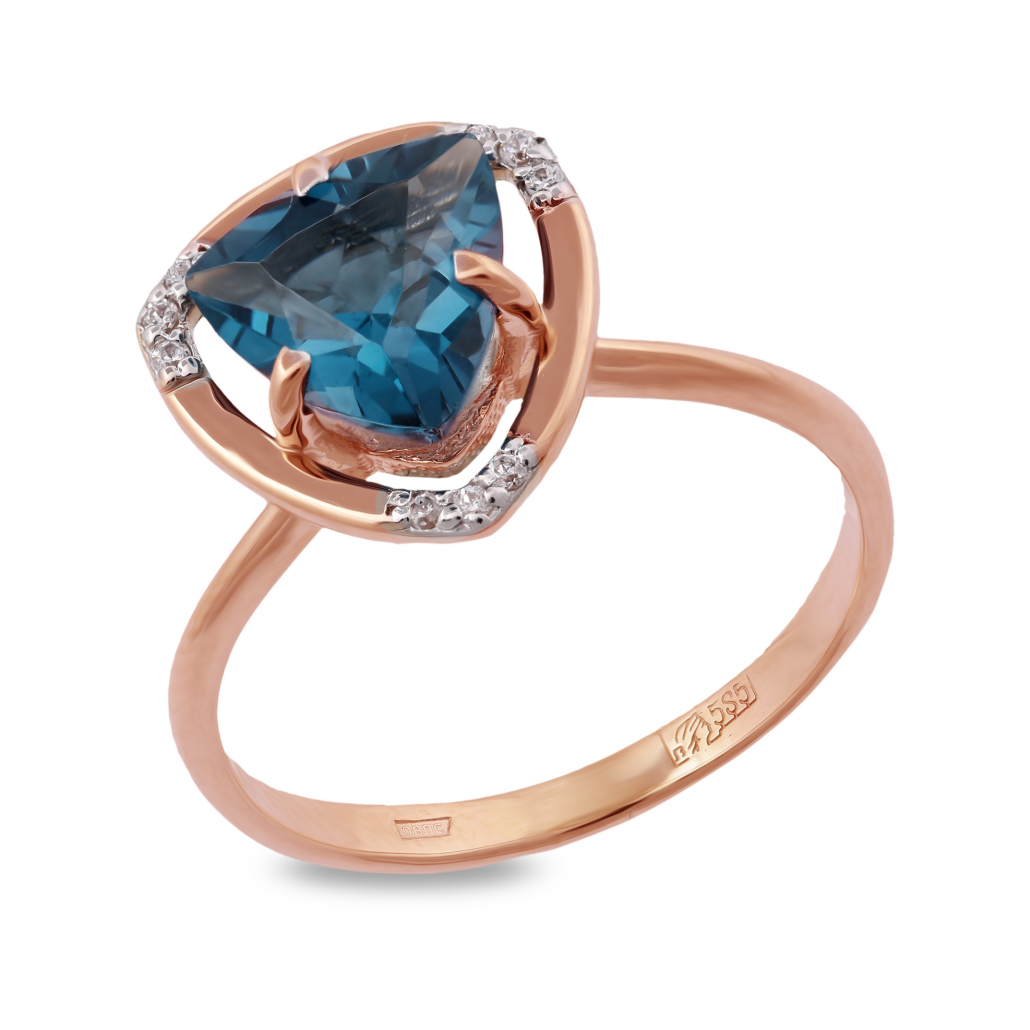 - Кольцо с фианитом и топазом из золота