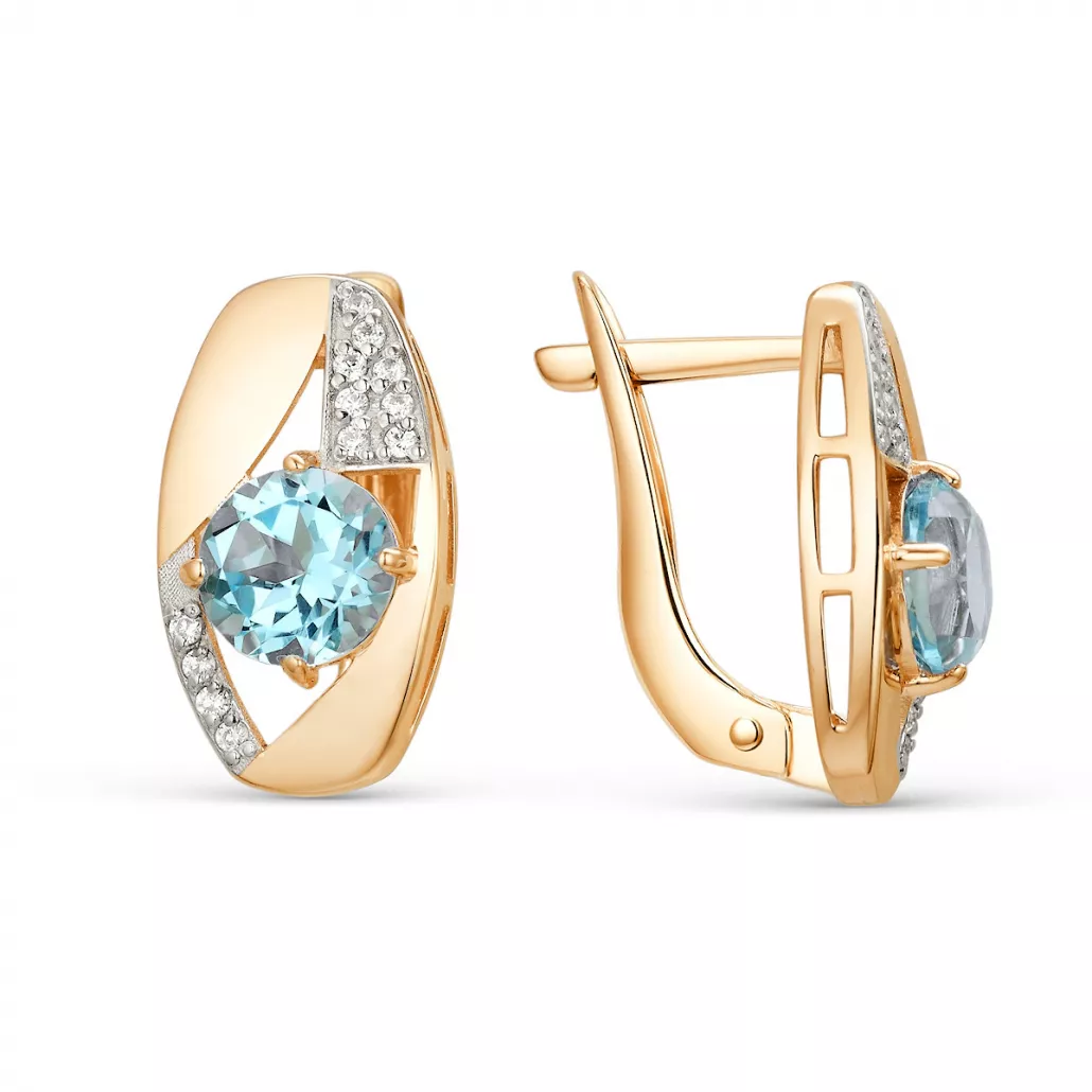 - Серьги с топазом и фианитом из золота