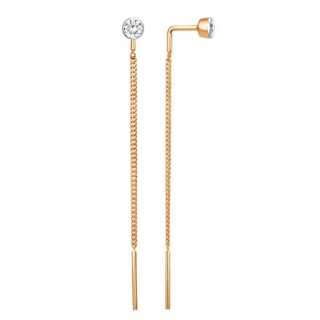 Серьги-продевки с фианитом из золота Артикул: 015672-1102