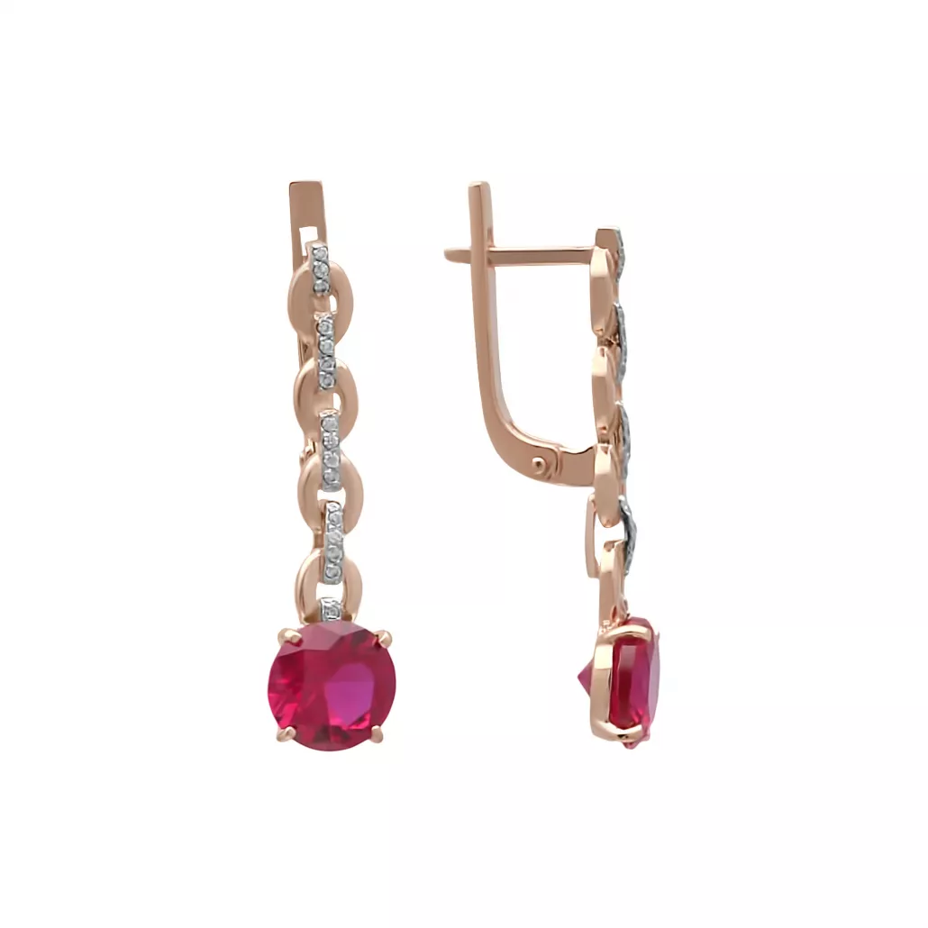 Серьги с корундом и фианитом из золота