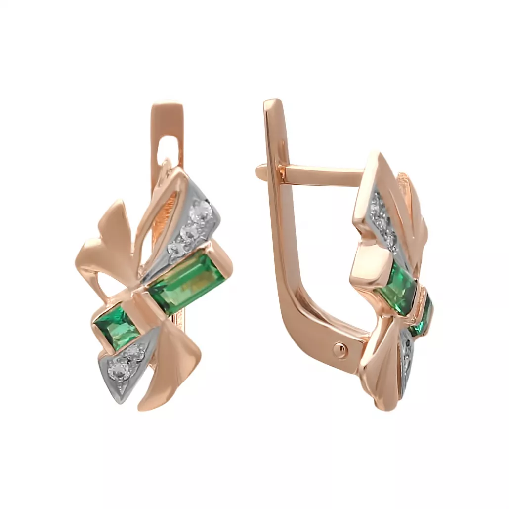 Серьги с фианитом и изумрудом из золота Артикул: 114036 наноизм.