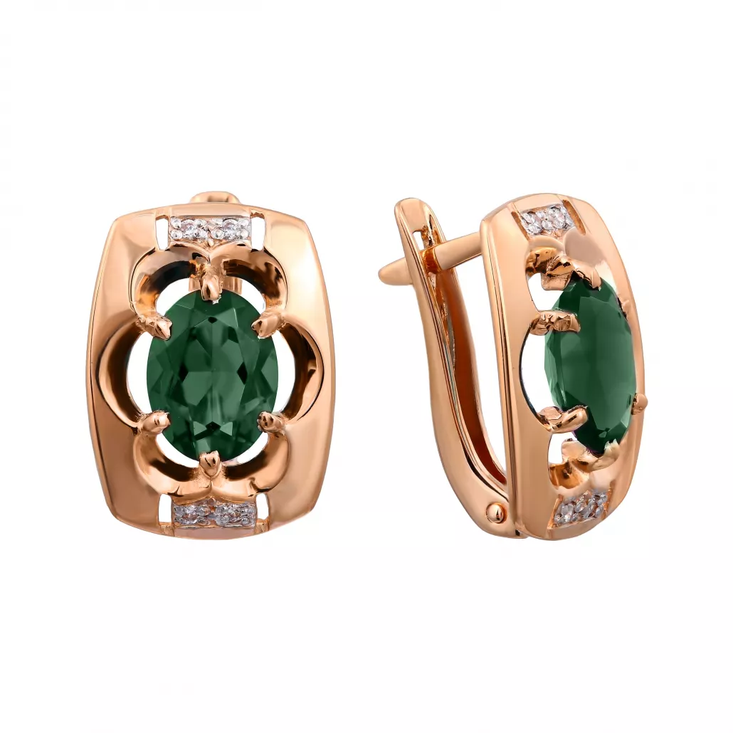 ОписаниеСерьги с изумрудом и фианитом из золотаартикул: С13262 Наноизумруд Овал 8х6-0,403гр 8 Фианит б/цв Кр 1,0-0,014гр - Материал