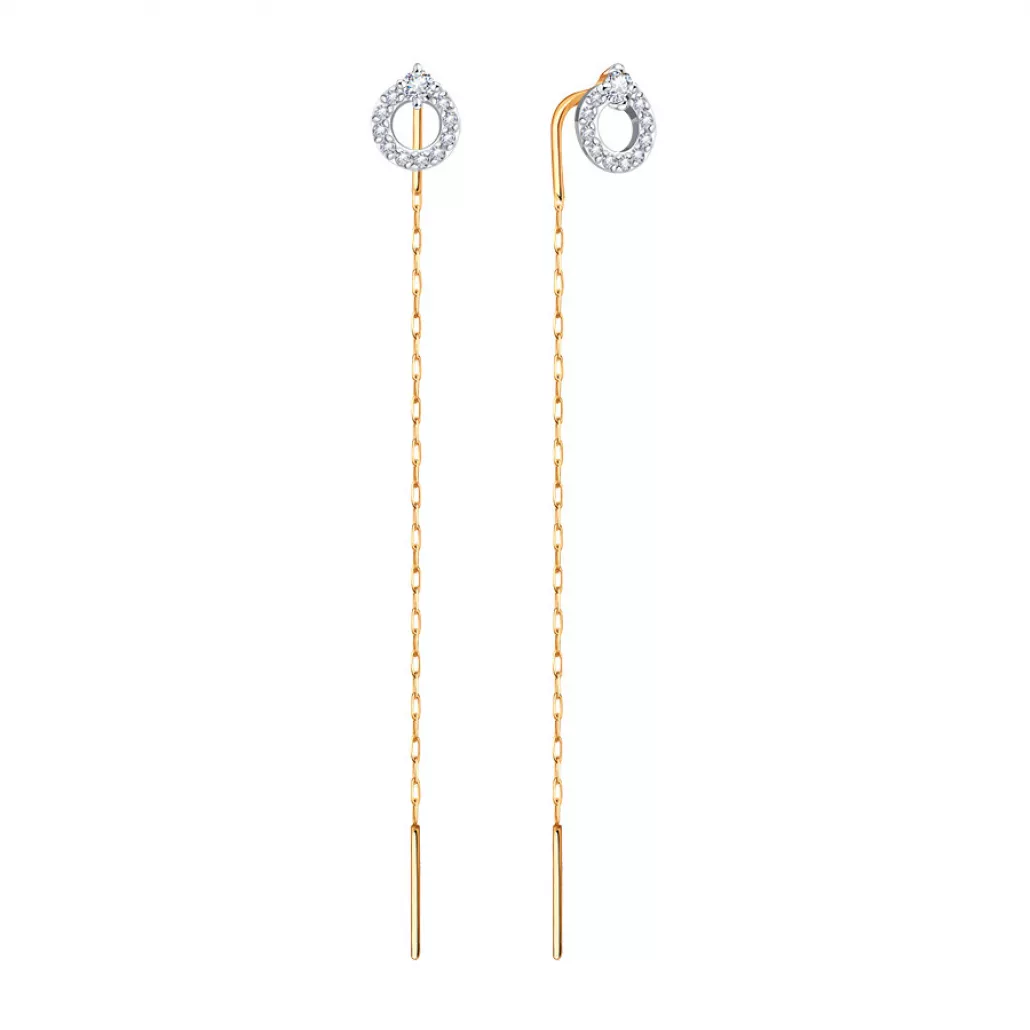 Серьги-продевки с фианитом из золота