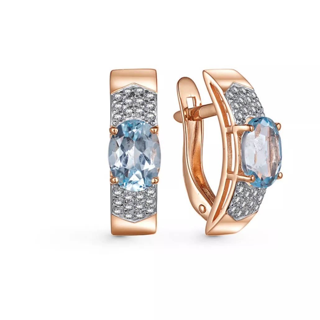 ОписаниеСерьги с топазом и фианитом из золотаартикул: 2099204ТС2 Топаз Sw Ов 7х5 1.605ct, 48 Фианит Кр 1,0 б/ц 0.083 - Материал