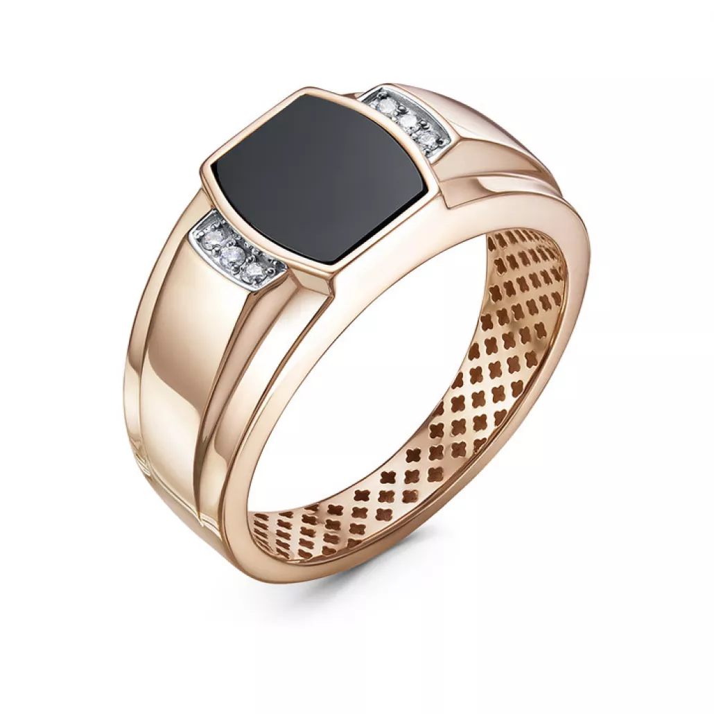 - Кольцо-печатка с ониксом и фианитом из золота