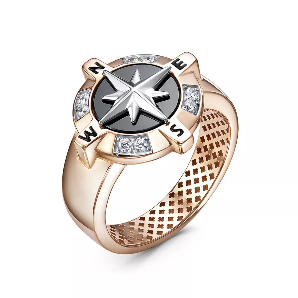 Кольцо с ониксом и фианитом из золота Артикул: 040013