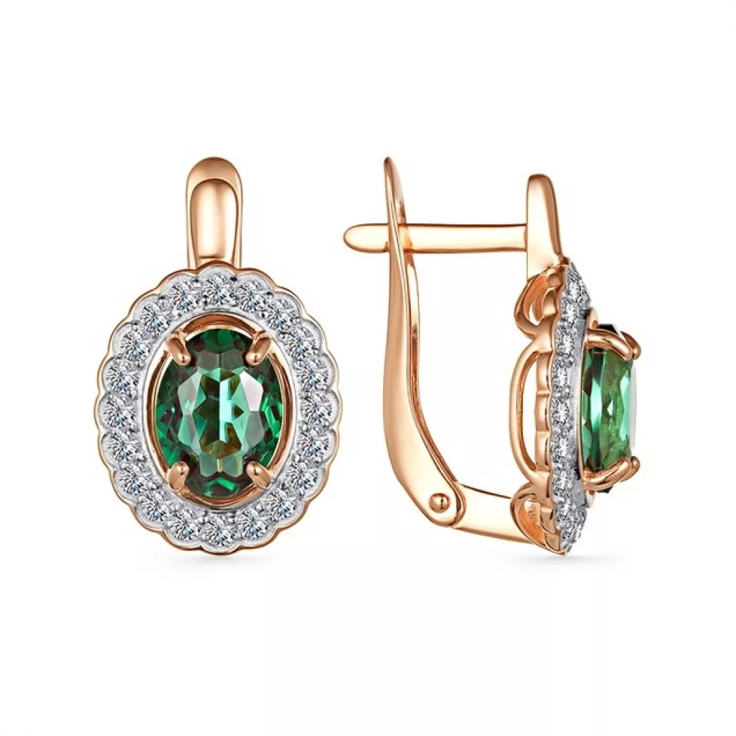 Серьги с кварцем и фианитом из золота Артикул: 2108204ТУ