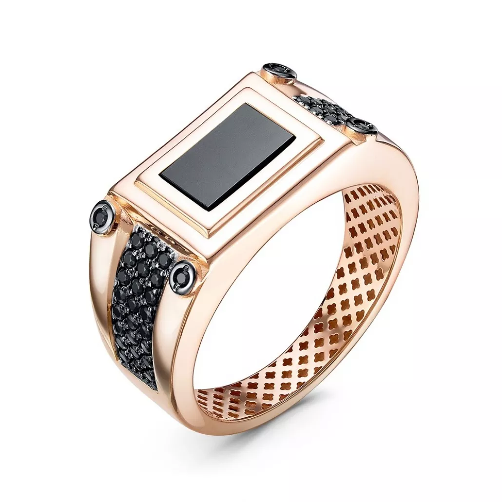 - Кольцо-печатка с ониксом и фианитом из золота