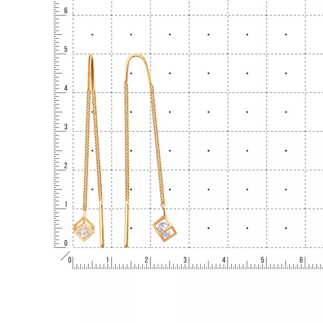 Серьги-продевки с фианитом из золота Артикул: Т107028573