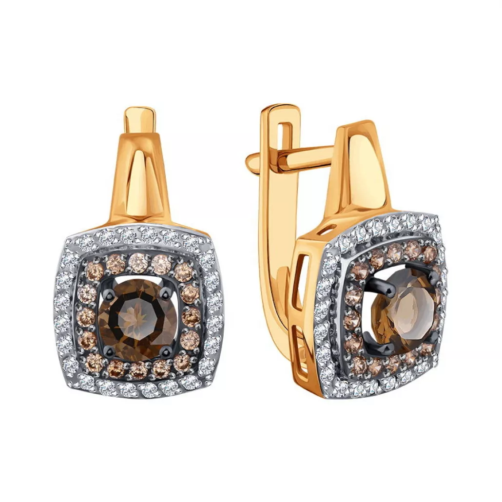 Серьги с раухтопазом и фианитом из золота Артикул: Т14702Г989