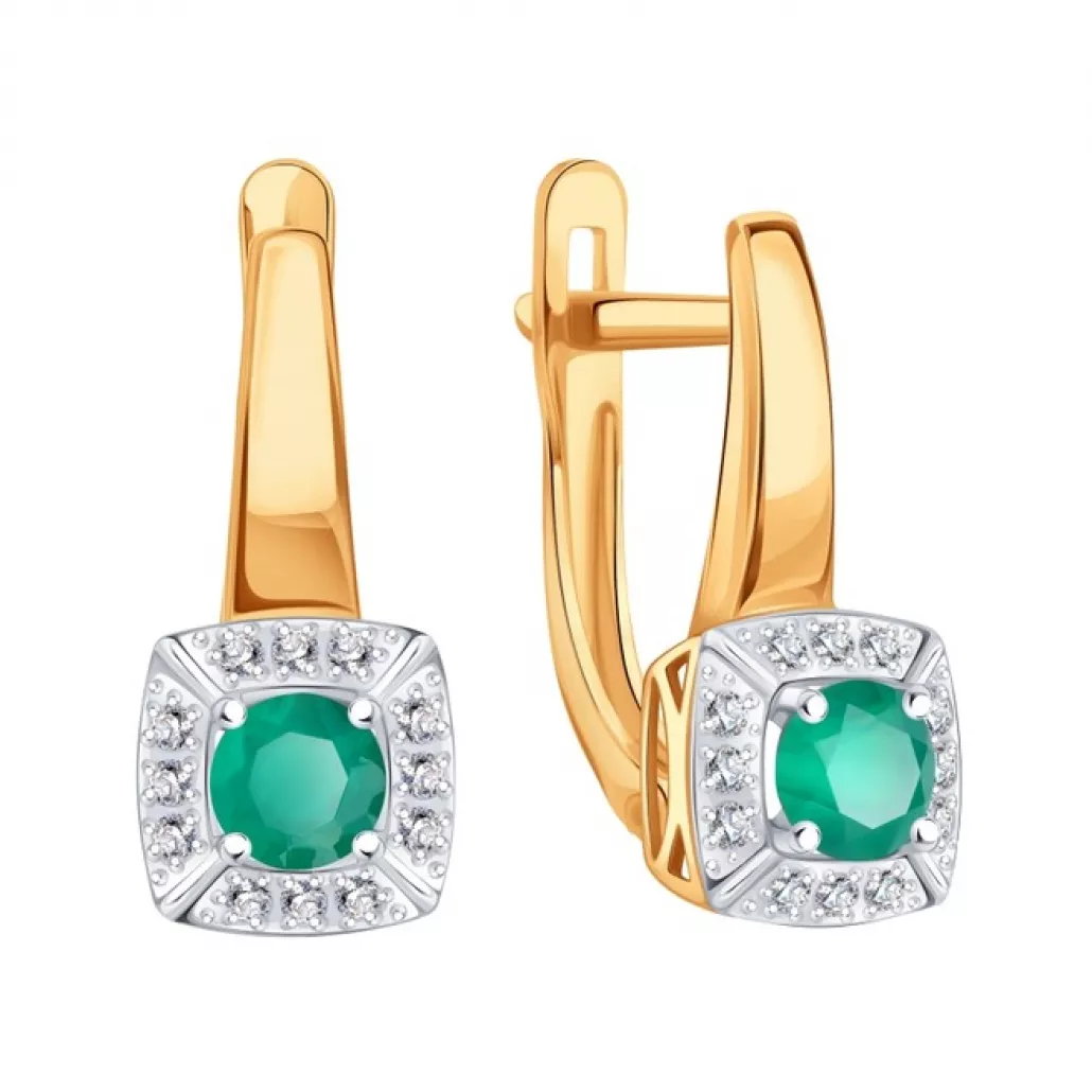 Серьги с фианитом и агатом из золота
